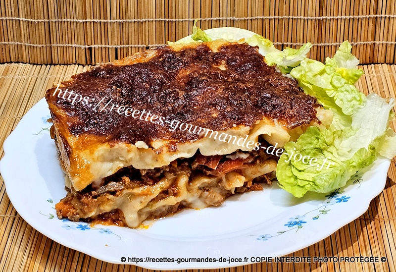 Lasagnes de bœuf aux champignons, carottes et paprika fumé, sauce tomate au basilic.
