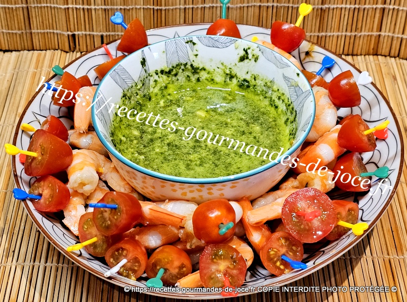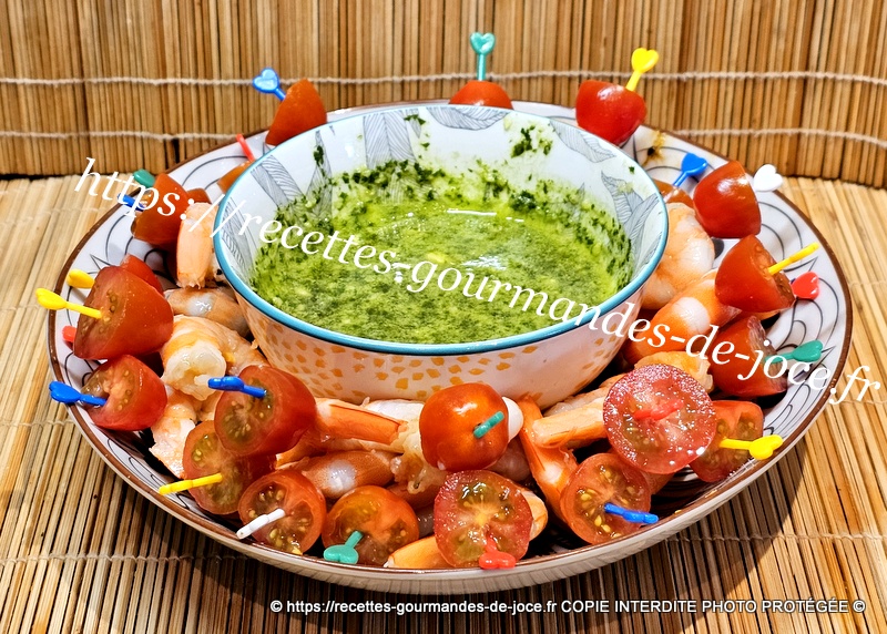 Réaliser la sauce et servir la sauce au basilic avec les mini brochettes.