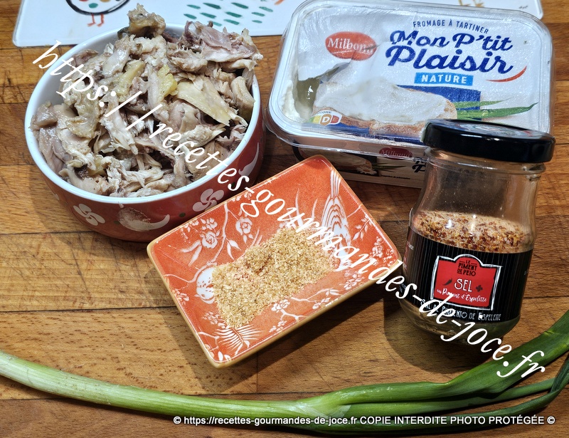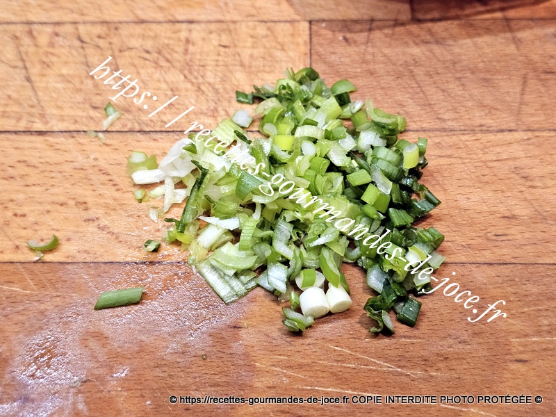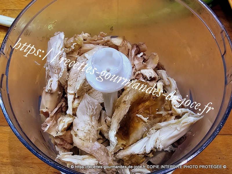 Nettoyer et émincer finement l’oignon cébette, dans le bol du mixeur mettre la chair de pintade, ajoute l’ail.