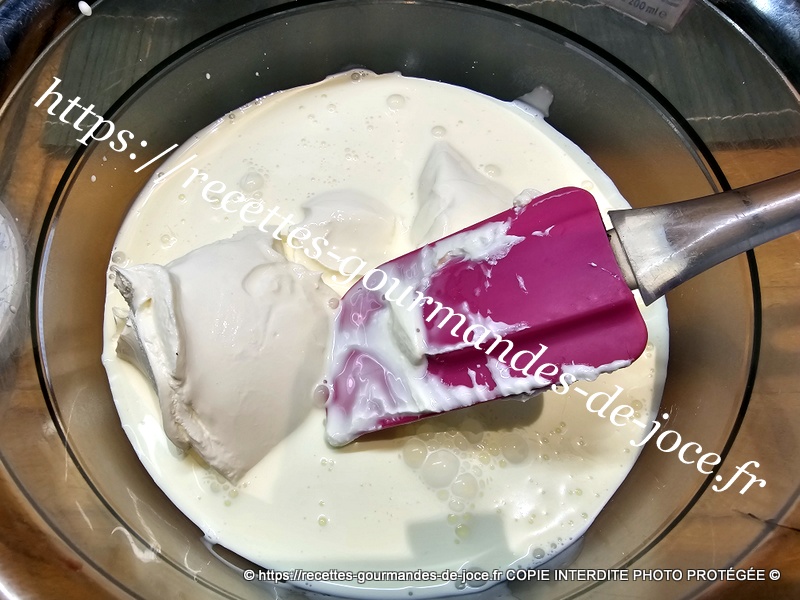 Fouetter jusqu’à obtention d’une mousse bien homogène (attention de ne pas trop fouetter longtemps car elle risque de trancher). Ajouter ensuite les 1/3 de coulis de fruits rouges, bien mélanger.