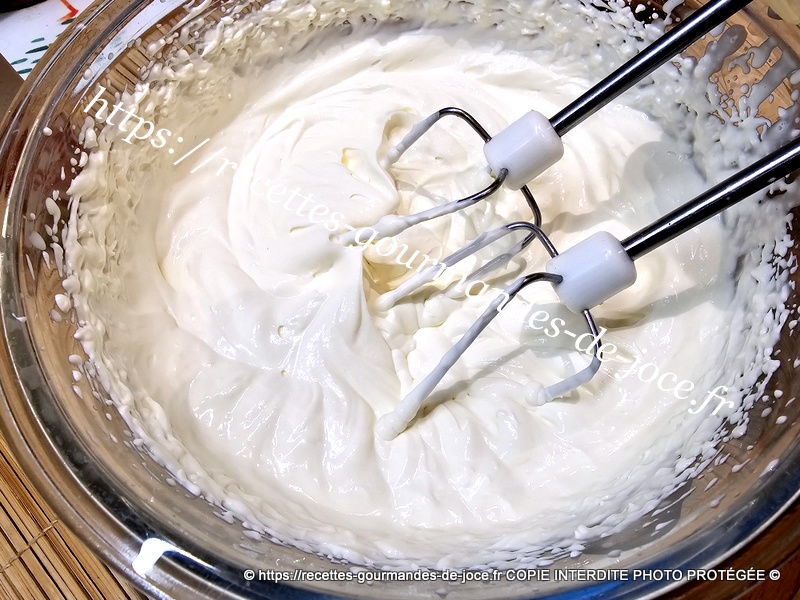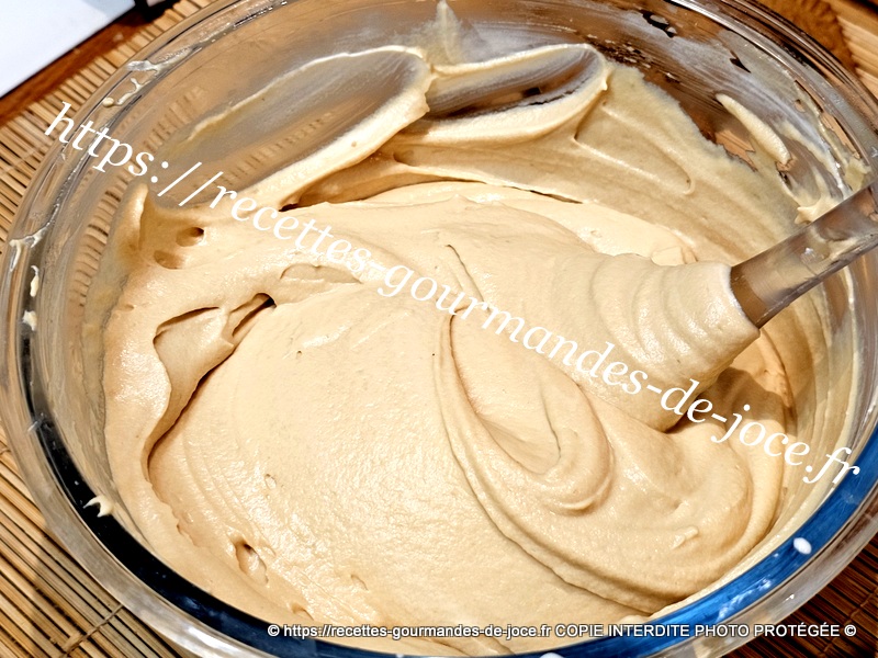 Bien mélanger puis l’ajouter à la première préparation, fouetter à nouveau de temps de bien tout mélanger. Réserver.