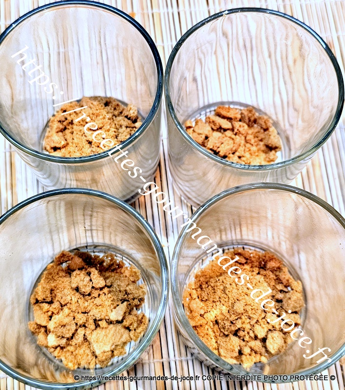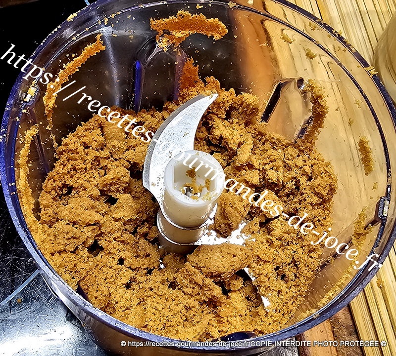 Dans le bol du mixeur, mettre 10 spéculos, les mixer mais pas trop finiment il faut qu’il reste encore des morceaux. Dans un autre bol, mettre 2 c à s de pâte de spéculos et la faire fondre environ 30 s’ au micro-ondes.