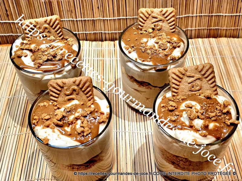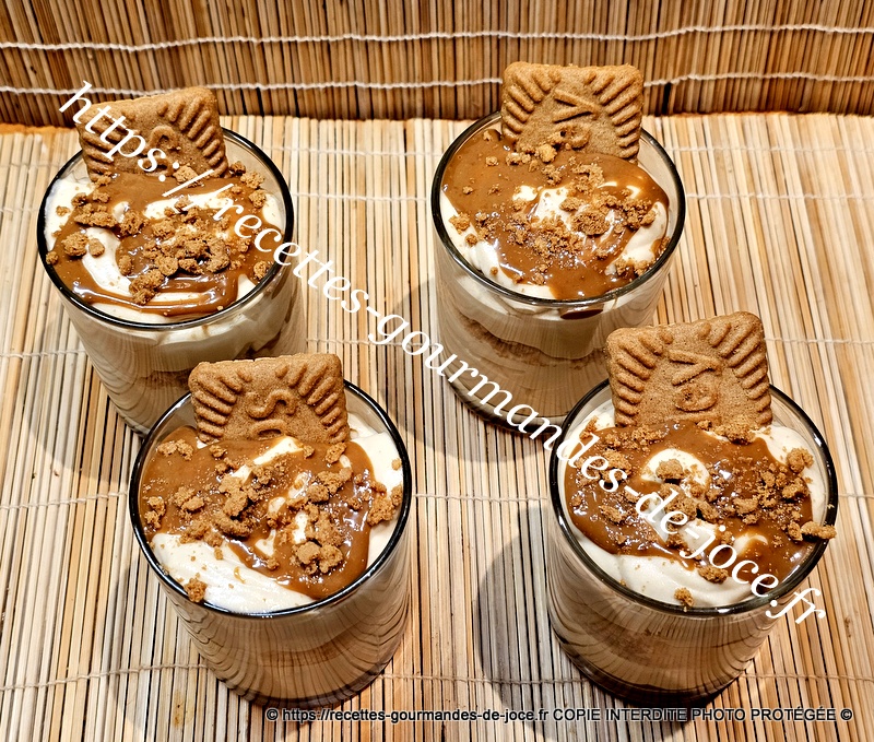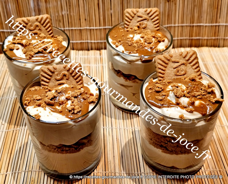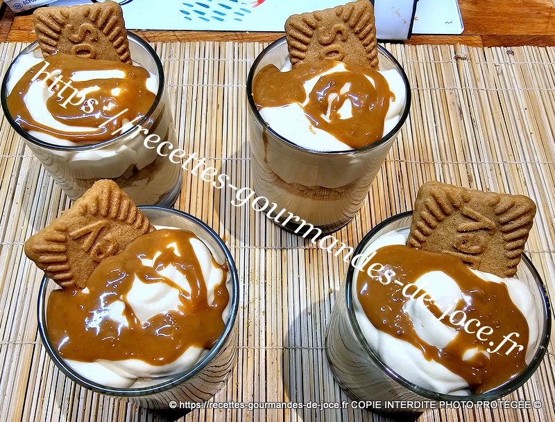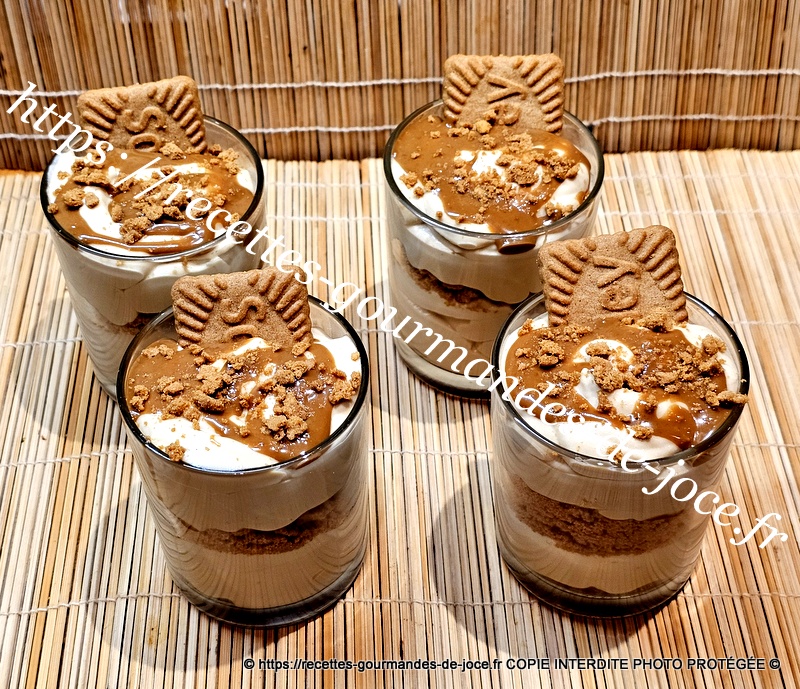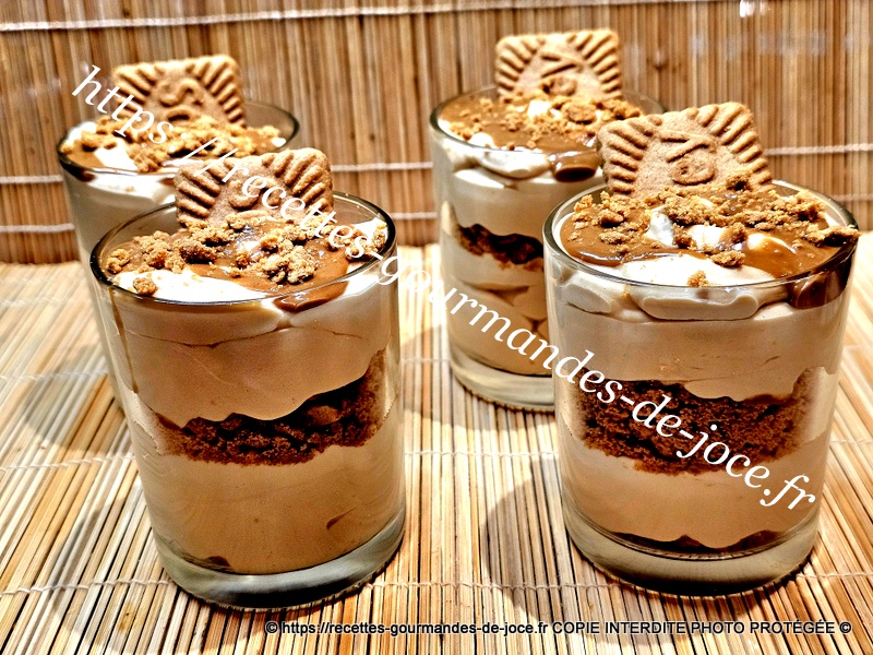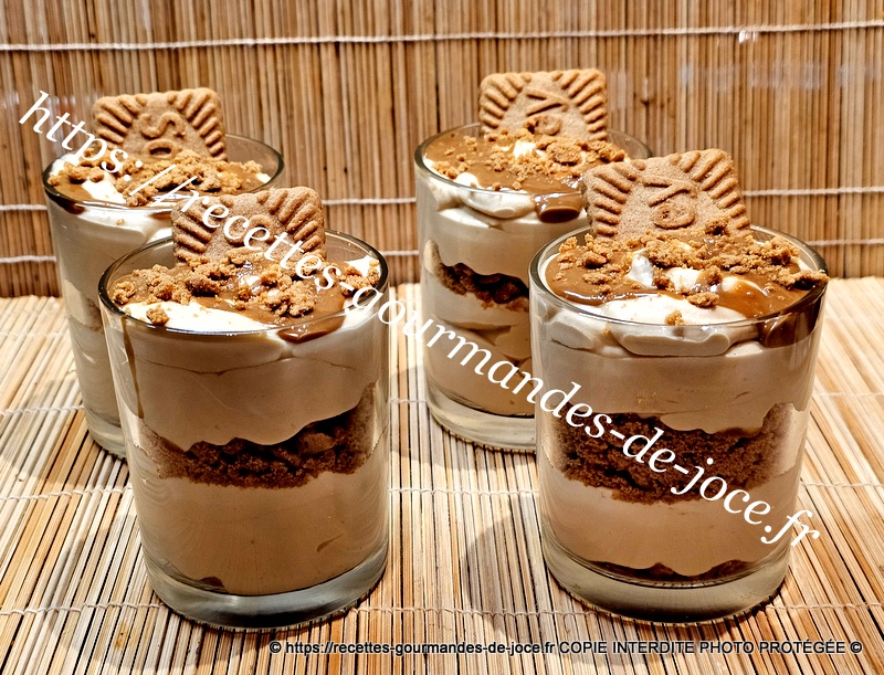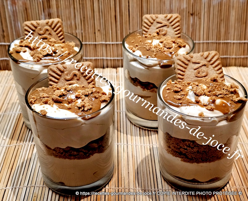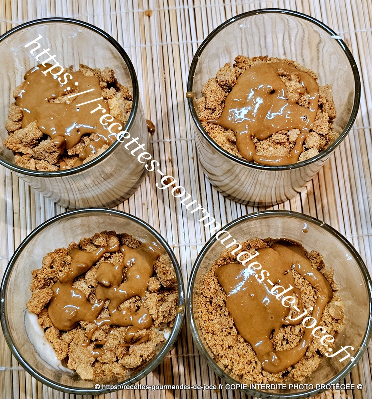 Répartir dans les verres la moitié des spéculos, ajouter la moitié de la mousse puis ajouter l’autre moitié des spéculos, ajouter un peu de pâte de spéculos fondu.