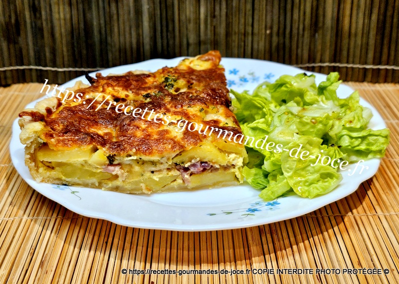 Recette de la tarte sur ce lien -> Tarte aux pommes de terre, oignons et lardons fumés
