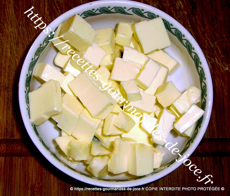 Couper le beurre et le mettre au réfrigérateur, placer également la cuve du robot et l’eau au réfrigérateur 1 h avant de réaliser la pâte.