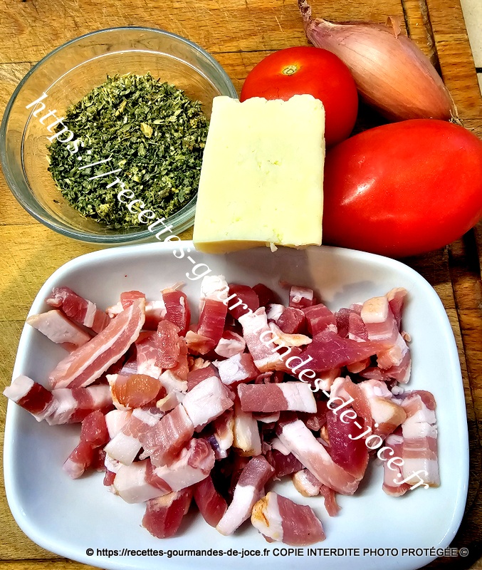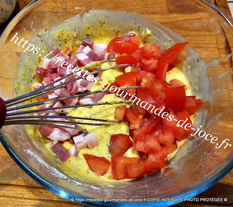 Couper les tomates en petits dés, les mettre dans une passoire et les laisser s’égoutter le temps de préparer la pâte. Nettoyer et hacher l’échalote, râper le fromage environ 50g. Réaliser la pâte de base selon la recette donnée plus haut ↑. Ajouter ensuite la persillade et l’échalote, mélanger.