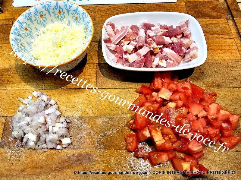 Ajouter ensuite les lardons et les dés de tomate et mélanger, ajouter ensuite le fromage.