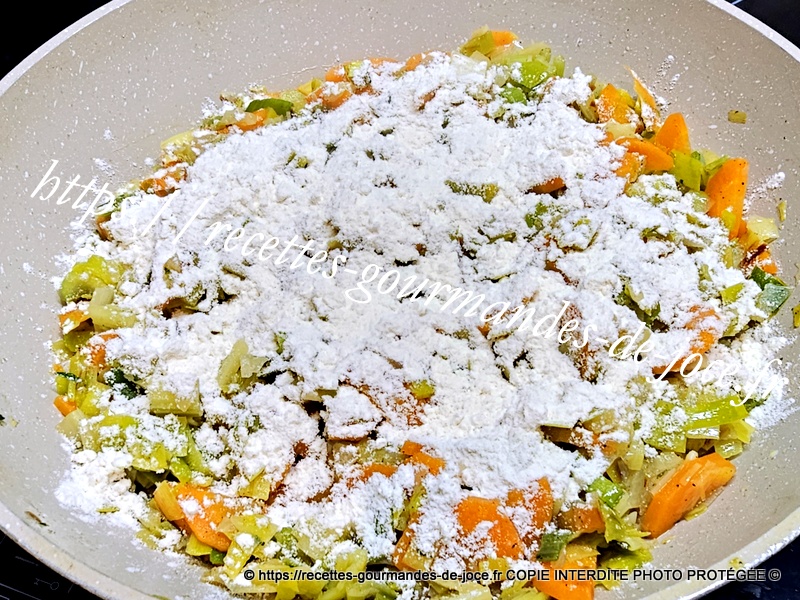 Saler et poivrer et laisser réduire pratiquement à sec. Ajouter ensuite la farine.