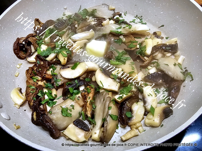 Ajouter ensuite le persil et mélanger, dès qu’ils sont cuits les reverser. Dans une poêle, mettre le beurre à fondre.