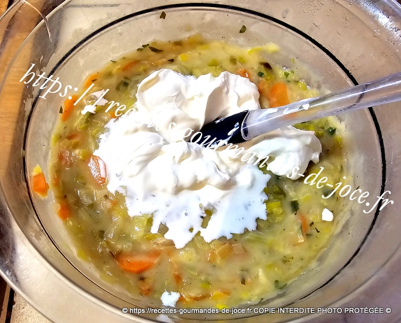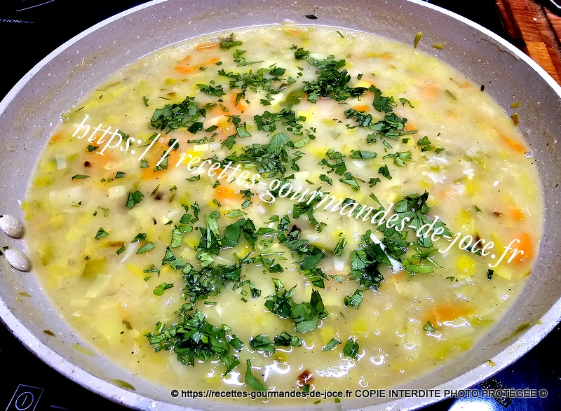 Mélanger, puis verser le bouillon, remuer et laisser mijoter le temps que la sauce épaississe.