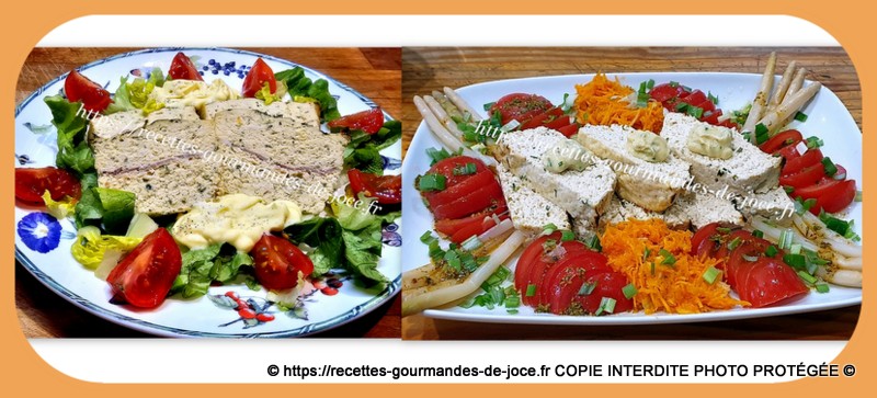 Une de mes recettes Ingrédients pour 3 personnes Pour la terrine de poulet 240 g de poulet (soit un beau filet) 1 blanc d’œuf 200 g de crème épaisse 1 petit bouquet de ciboulette 1 c à c d’épices pour poulet détails sur ce lien -> Épicétoo Sel et poivre Pour l’accompagnement 3 tomates 4 …