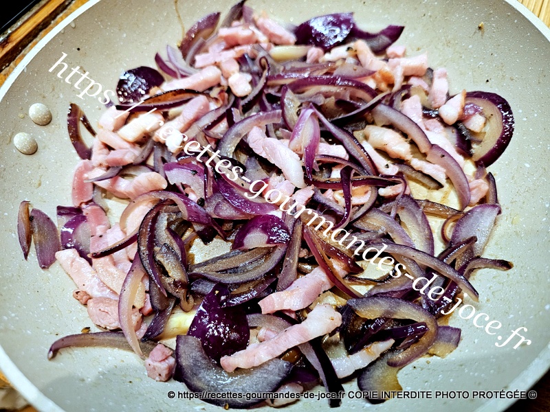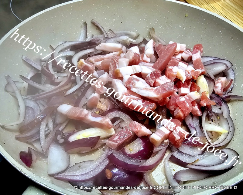 Les faire suer, lorsqu’ils commencent à colorer, ajouter les lardons, mélanger et les faire suer, réserver ensuite hors du feu.