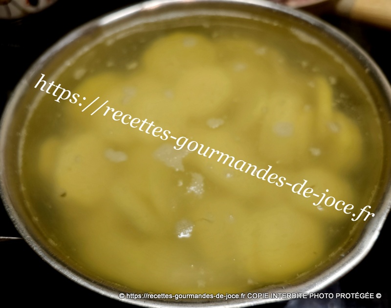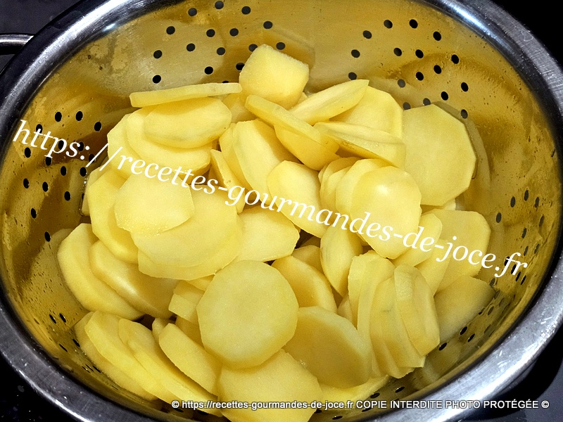 Porter à ébullition une casserole d’eau salée, à l’ébullition ajouter les pommes de terre et les cuire 10 minutes, elles doivent rester légèrement ferme. Les égoutter et les réserver.