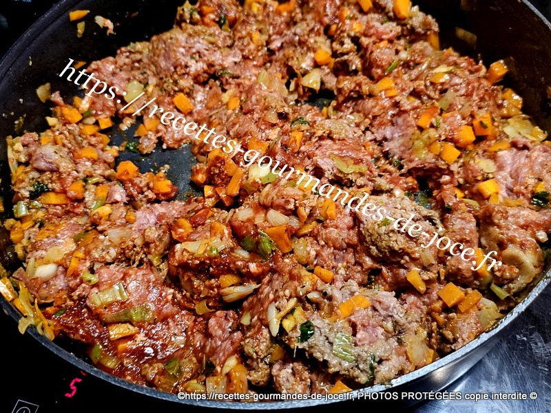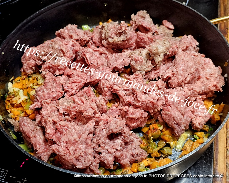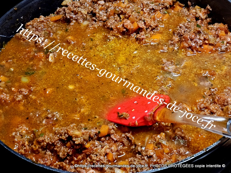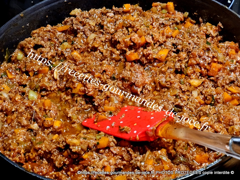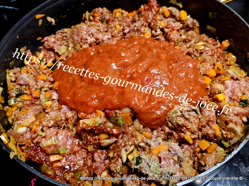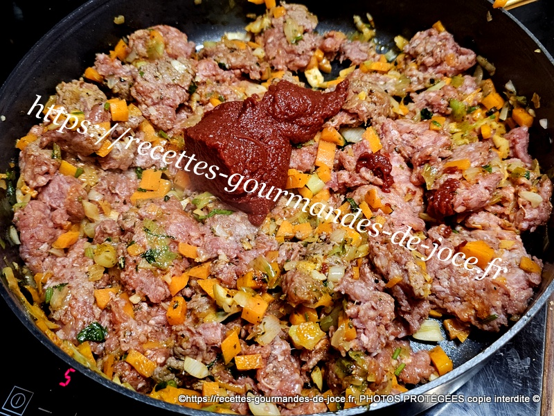 Bien mélanger et ajouter le concentré de tomate, mélanger à nouveau pour bien émietté le bœuf.