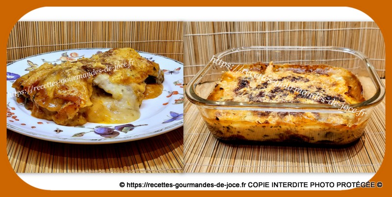 Millefeuille d’aubergines aux tomates, chèvre et emmental.