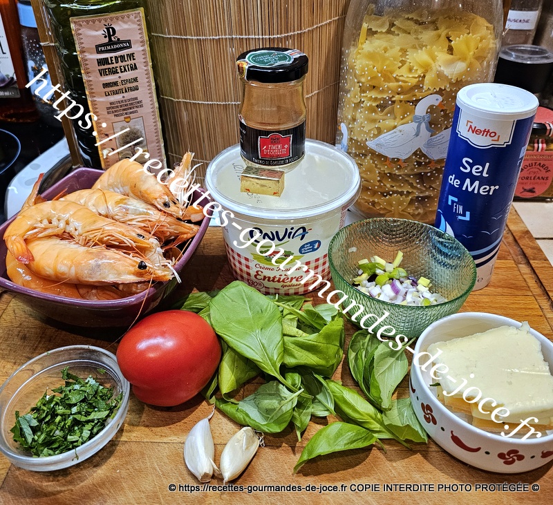 Mettre un faitout d’eau salée à bouillir avec le kub’or. A l’ébullition ajouter les farfalles et remuer jusqu’à la reprise de l’ébullition, laisser cuire selon vos goûts et les indications du paquet. Pendant la cuisson des pâtes, laver et couper la tomate en petits dés, peler et hacher finement l’oignon, décortiquer les crevettes et les couper en morceaux si elles sont très grosses.