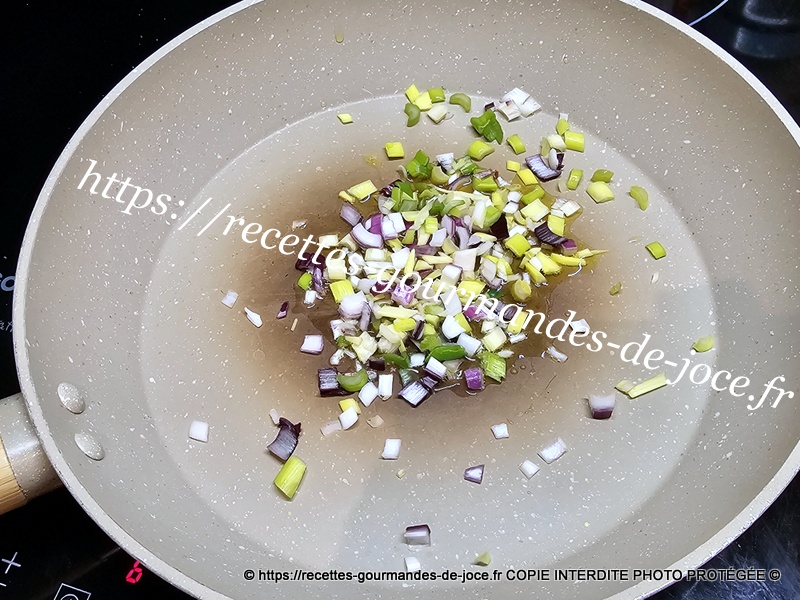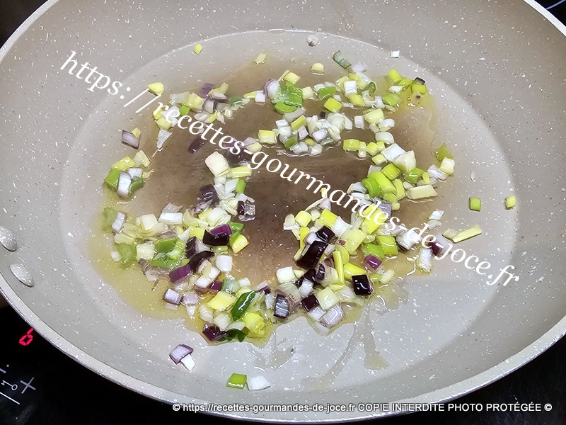 Dans une poêle mettre un filet d’huile d’olive, ajouter l’oignon et le faire suer sans coloration.