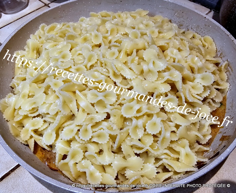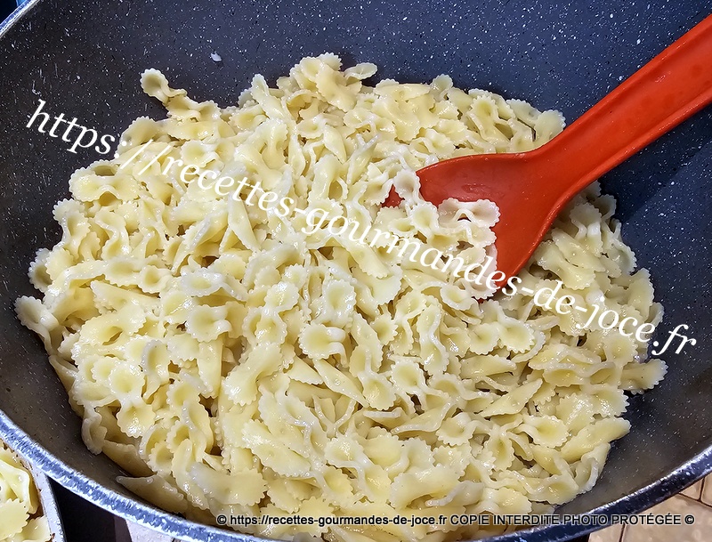 Une fois réduit, ajouter la crème et bien mélanger, terminer par les tiges d’oignon, mélanger et réserver le temps de s’occuper les pâtes.