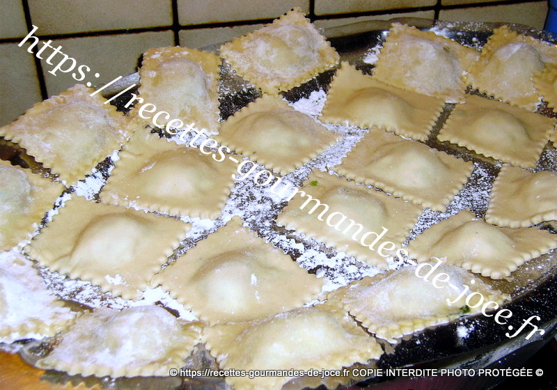 Passer une roulette dentelée pour couper vos ravioles. Déposer vos ravioles dans un plat fariné, le temps de faire les suivants.