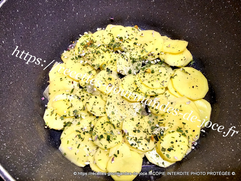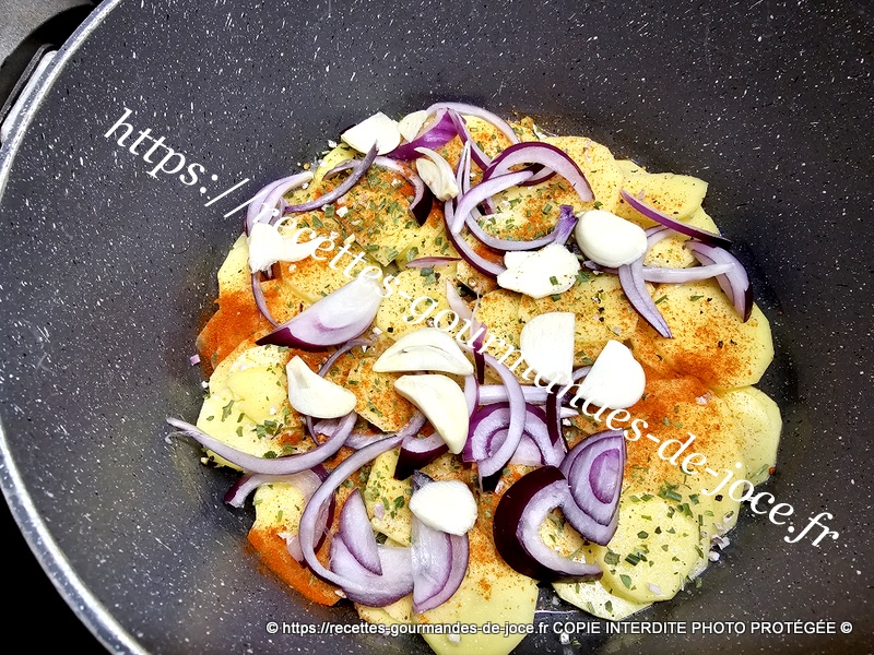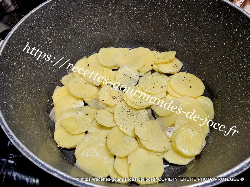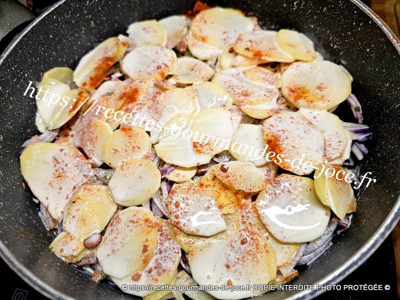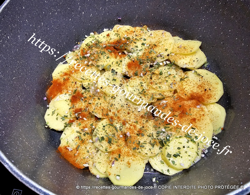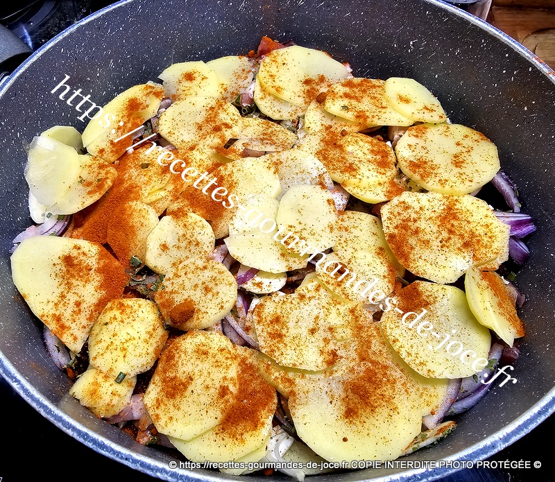 Ajouter un tiers des pommes de terre, saler et poivrer, ajouter 1 c à s de persillade, 1 c à s de paprika fumé.