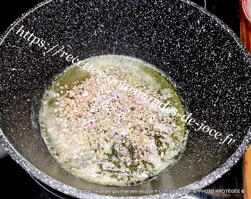 Presser le citron, dans une casserole mettre le beurre à fondre. Lorsqu’il est fondu, ajouter l’échalote et laisser quelques instants.