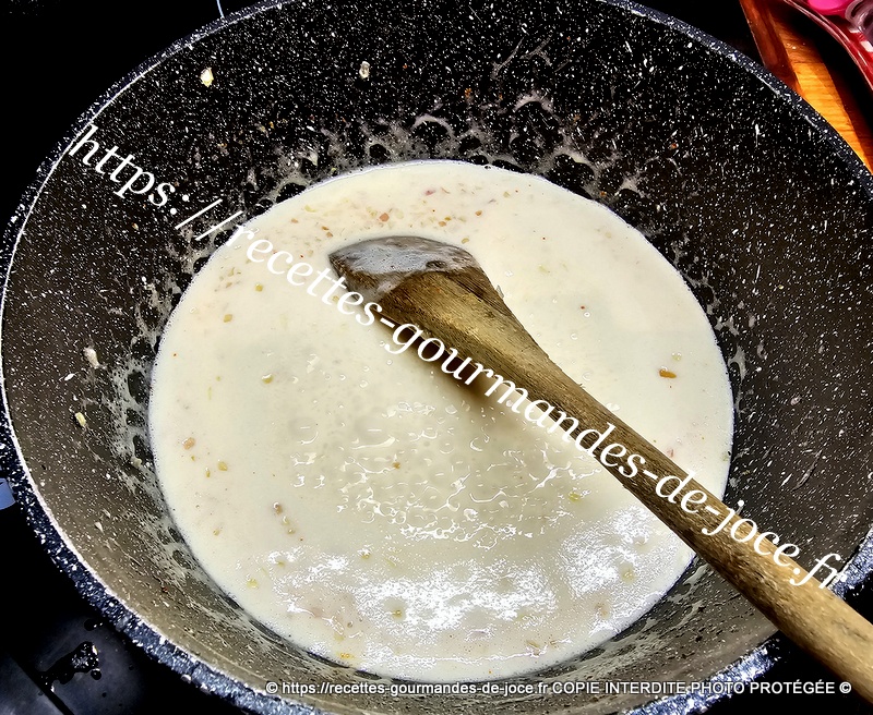 Ajouter ensuite le jus de citron et mélanger, verser ensuite la crème. Mélanger, saler et ajouter le piment d’Espelette, laisser mijoter 2 minutes à feu doux puis stopper la cuisson.