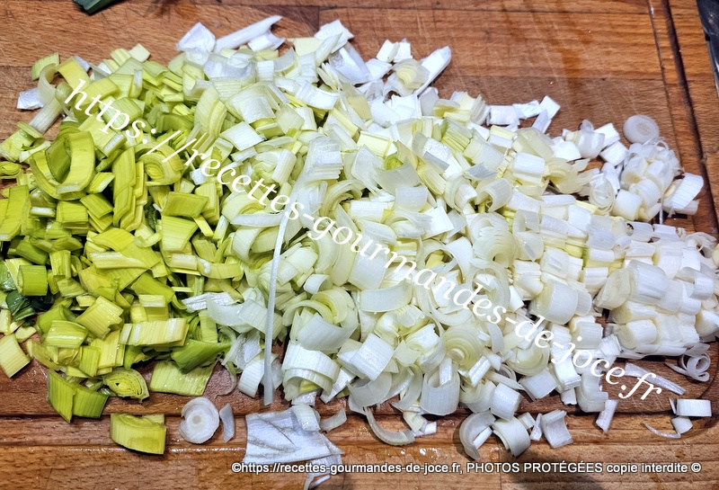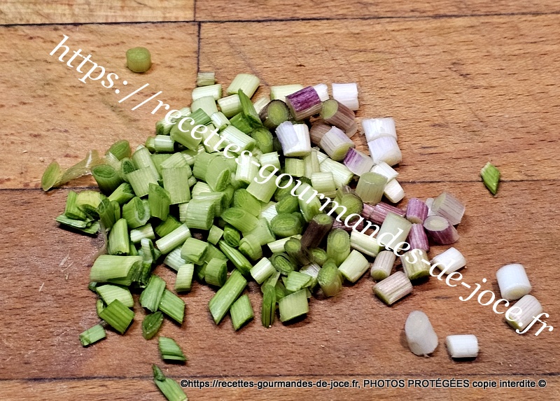 Laver et ciseler finement les poireaux, laver et ciseler les aillets ou hacher les gousses d’ail dégermées. Décortiquer les crevettes, peler et hacher l’échalote, laver et ciseler l’ail des ours ou la ciboulette.