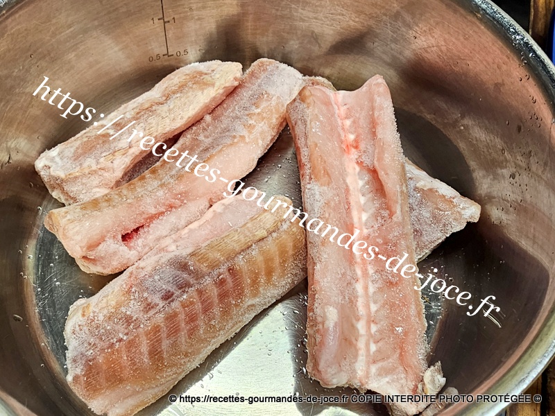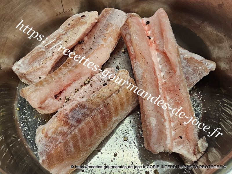 Mettre les tronçons de roussette à pocher dans une marmite, les saler et poivrer et ajouter 1 c à s de mélange pour poisson.