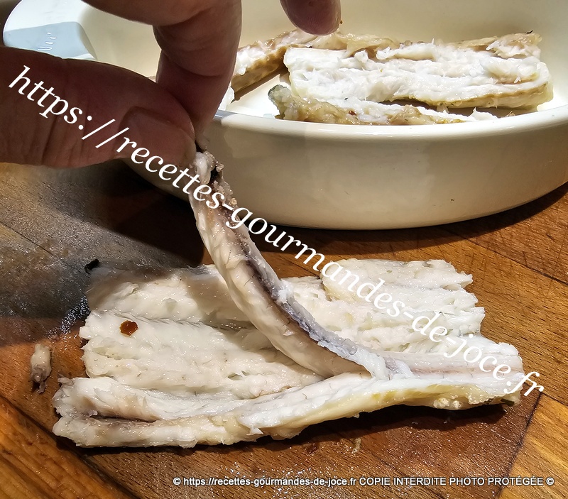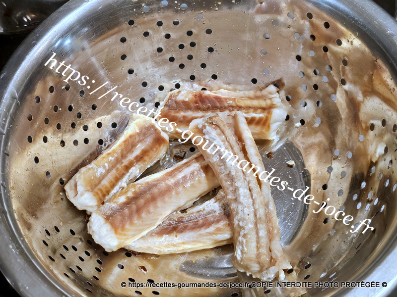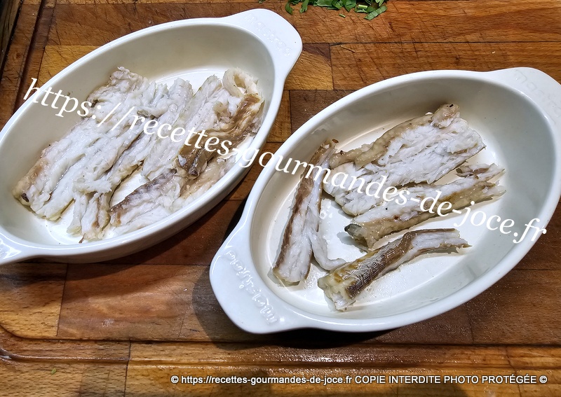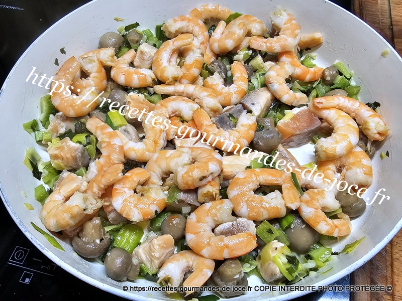 Ajouter ensuite ls crevettes. Mélanger laisser cuire quelques instants (le saumon doit être mi-cuit car il finira de cuire avec la sauce bien chaude. Réserver. Ôter le cartilage centrale des morceaux de roussette, ne le jeter pas si vous avez un chien ils en raffolent ;).