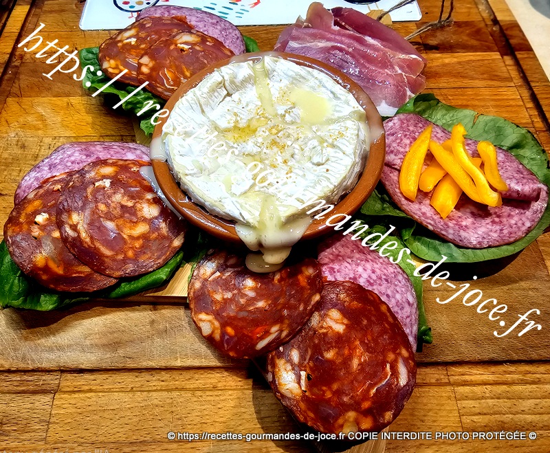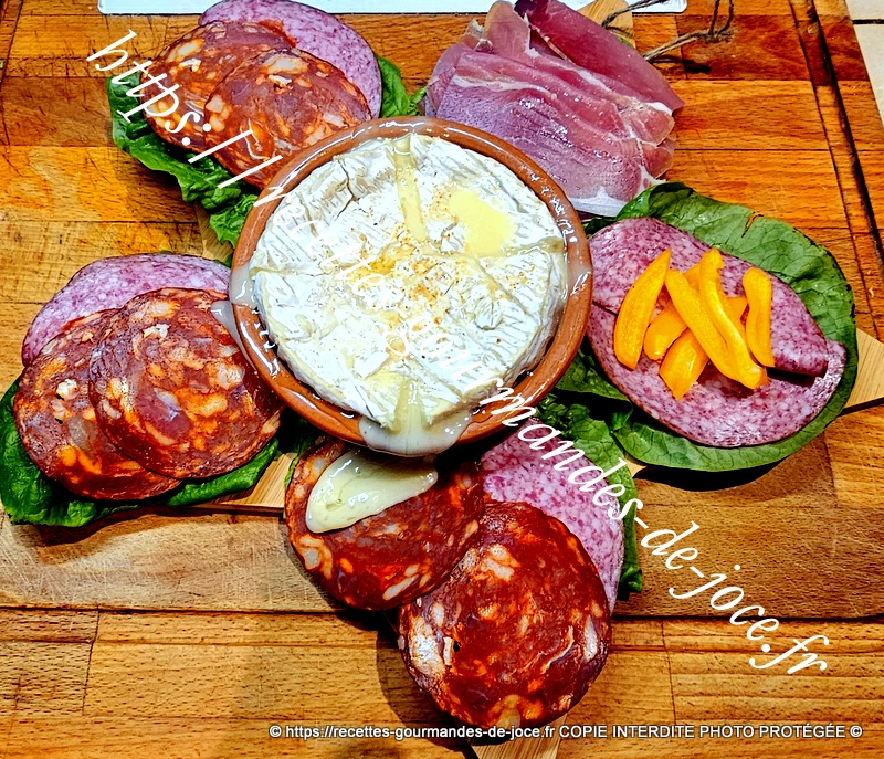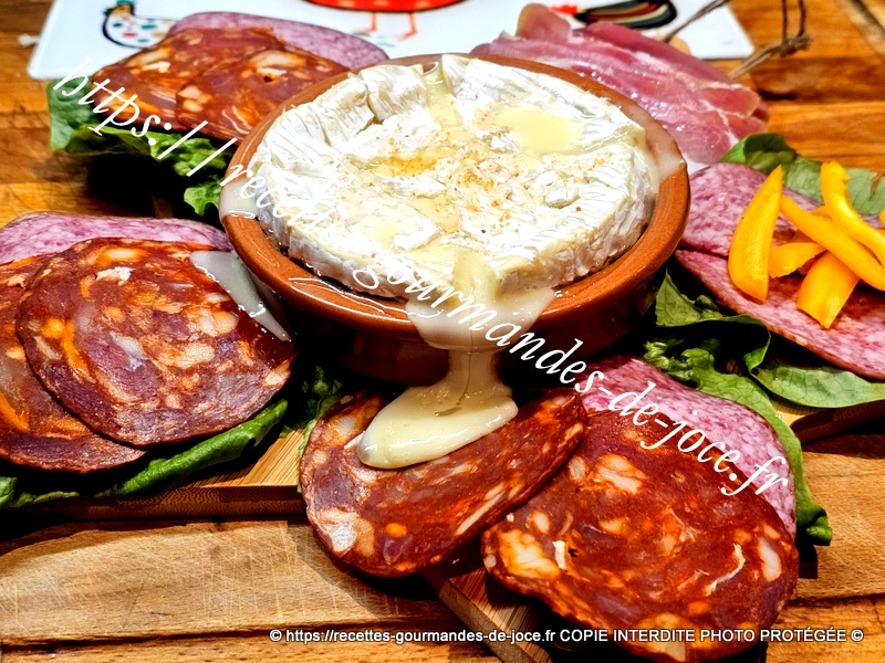 Camembert rôti à l’ail, charcuterie et frites, cuisson Air Fryer.