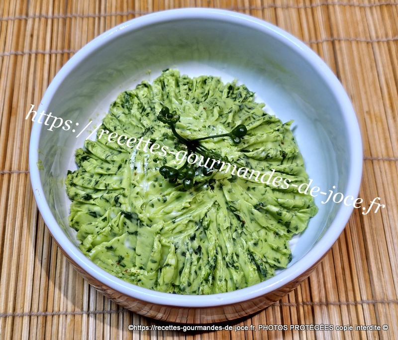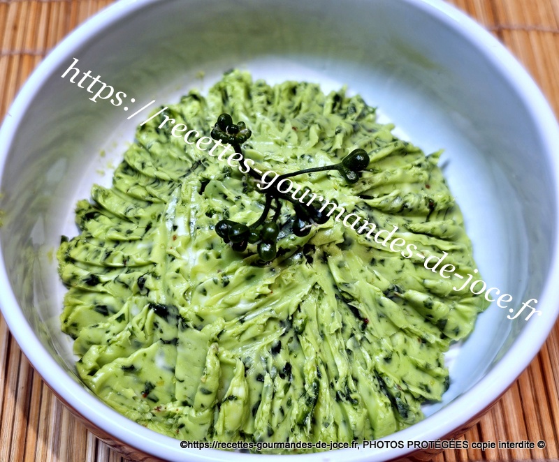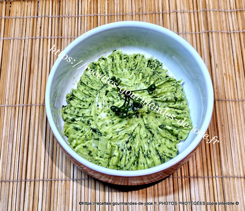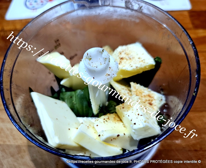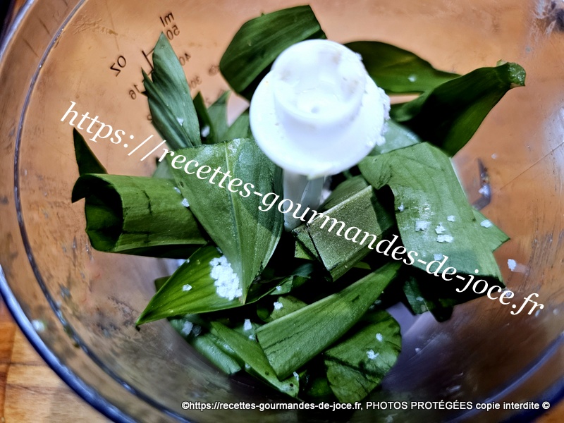 Sortir le beurre 1h avant. Laver et sécher les feuilles, les couper grossièrement et les déposer dans le bol du mixeur, ajouter la fleur de sel.
