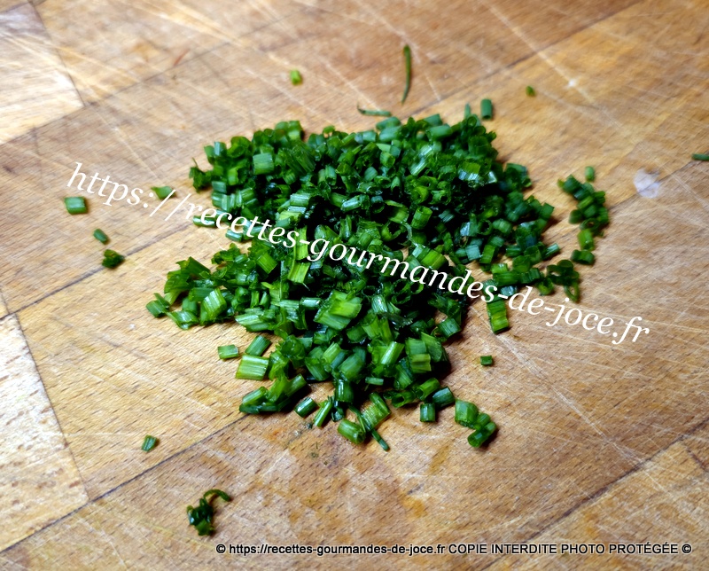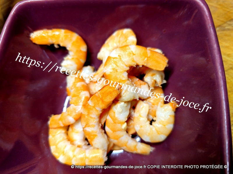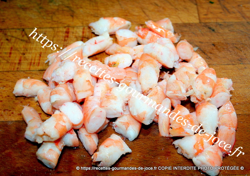 Décortiquer les crevettes et les couper en morceaux, laver et ciseler la ciboulette.