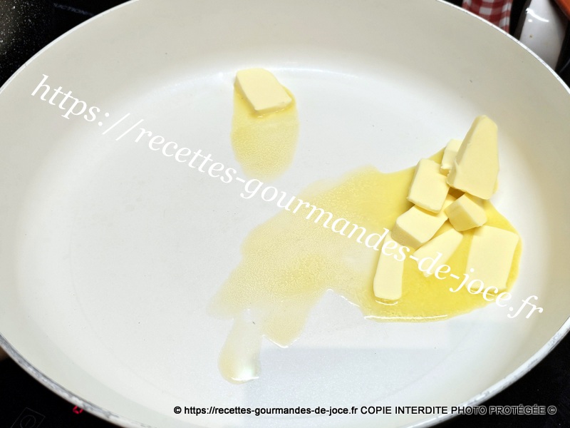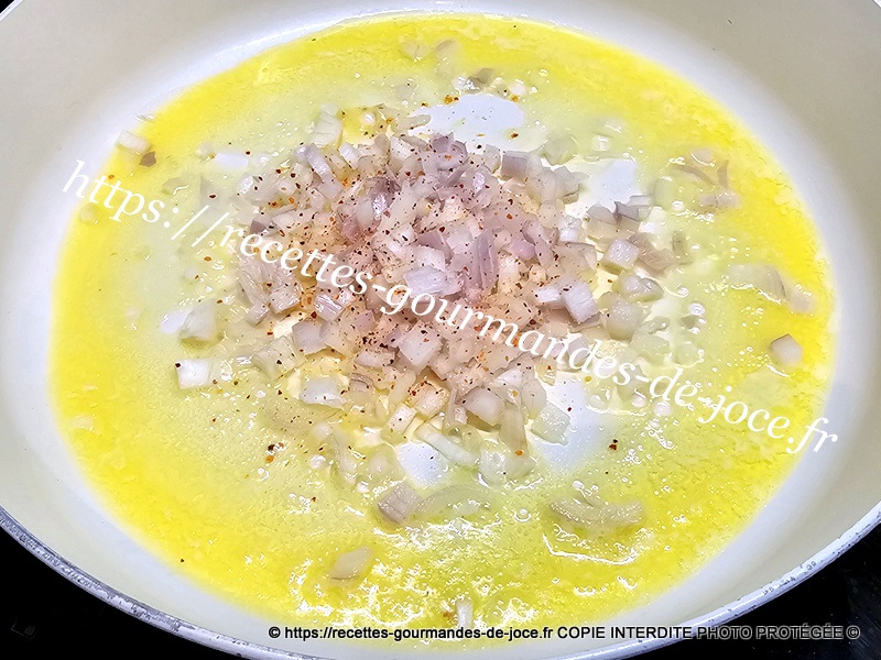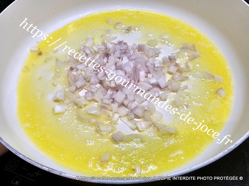 Dans une poêle, mettre le beurre à fondre, ajouter l’échalion, saler et poivrer.