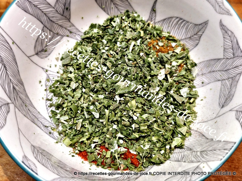 Dans un bol, mettre le sel et le poivre, ajouter les épices et la persillade.