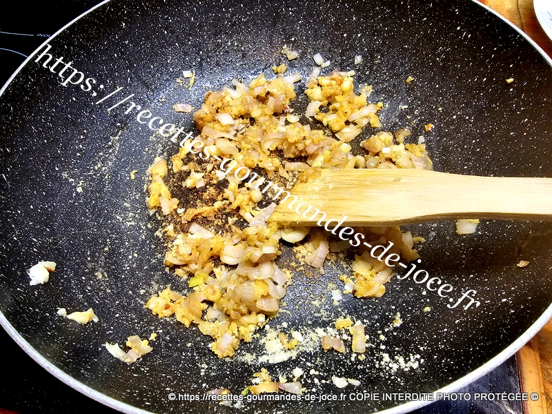 Puis débarrasser. À la place mettre les échalotes et l’ail à dorer légèrement.