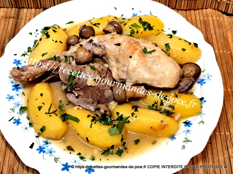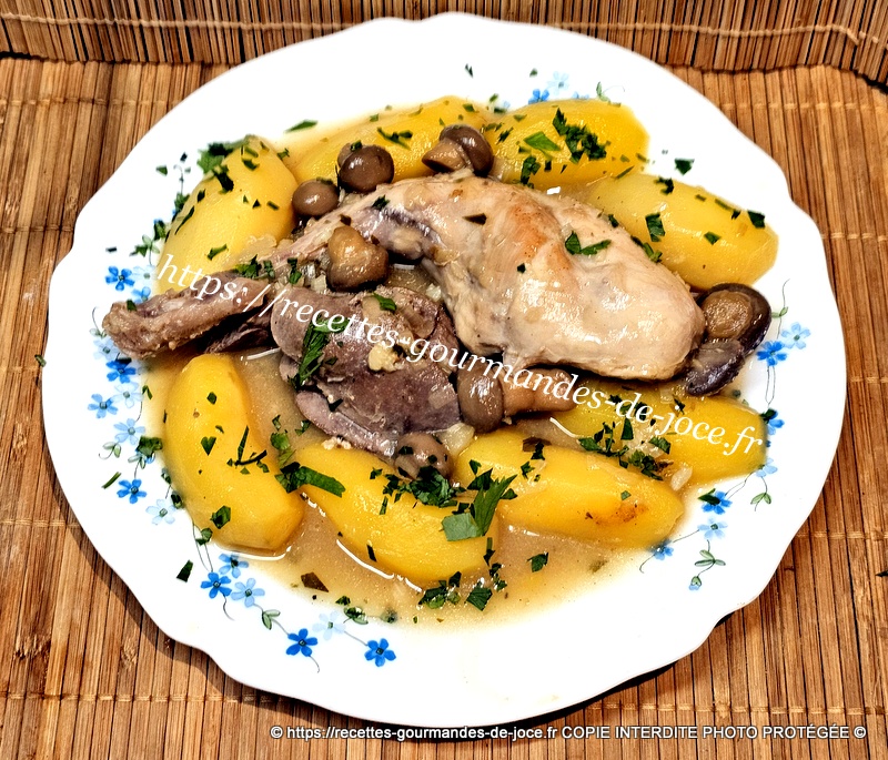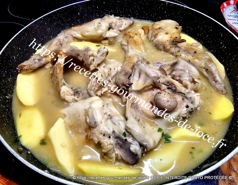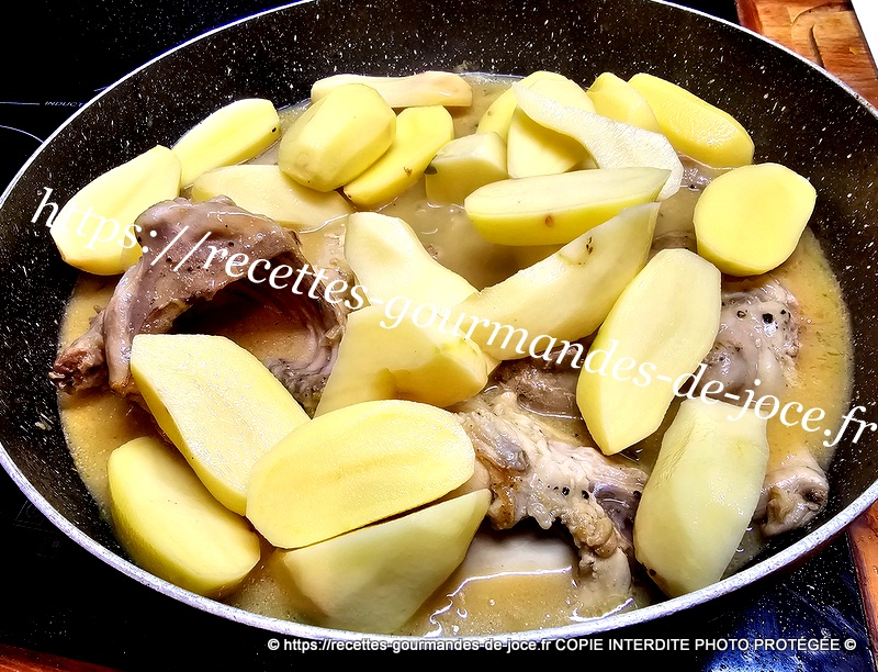 Puis la moutarde, mélanger à nouveau et remettre les morceaux de lapin. Ajouter les pommes de terre.