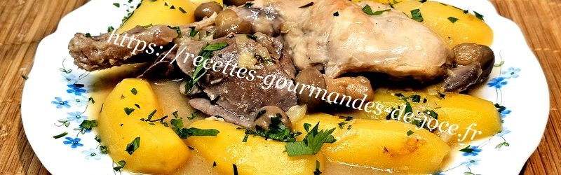 Lapin aux champignons et pommes de terre sauce légèrement moutardée.