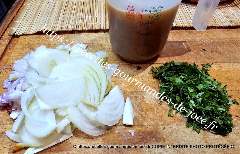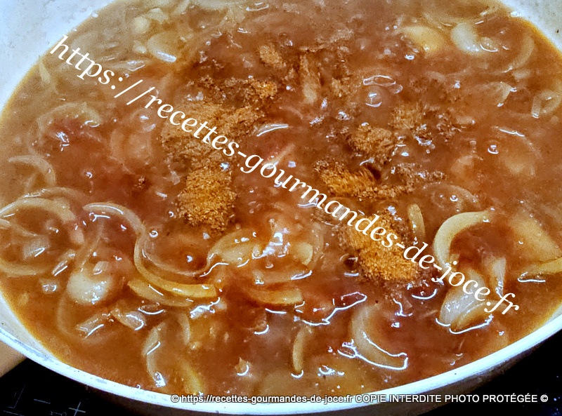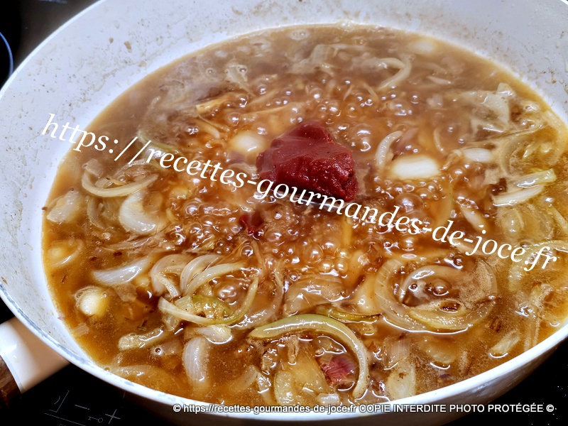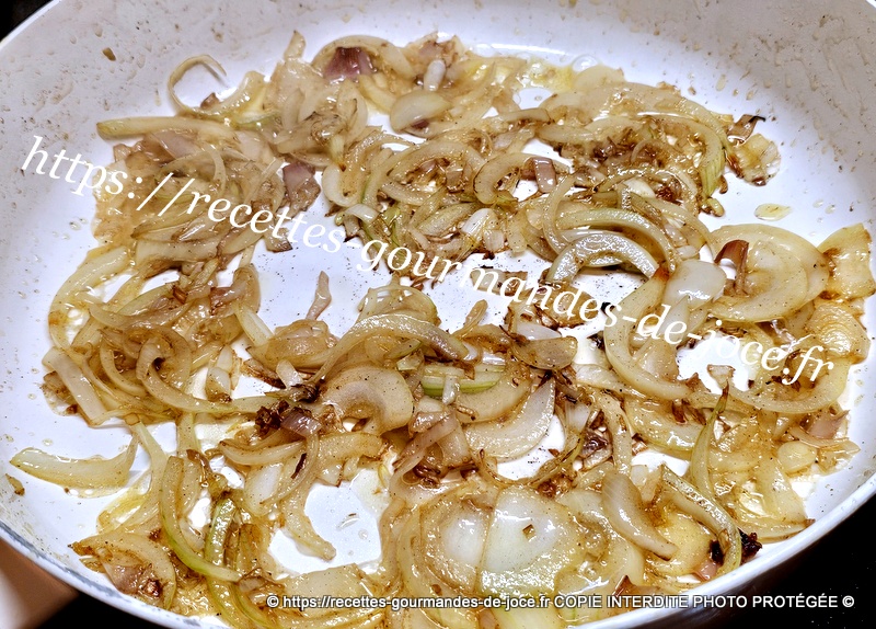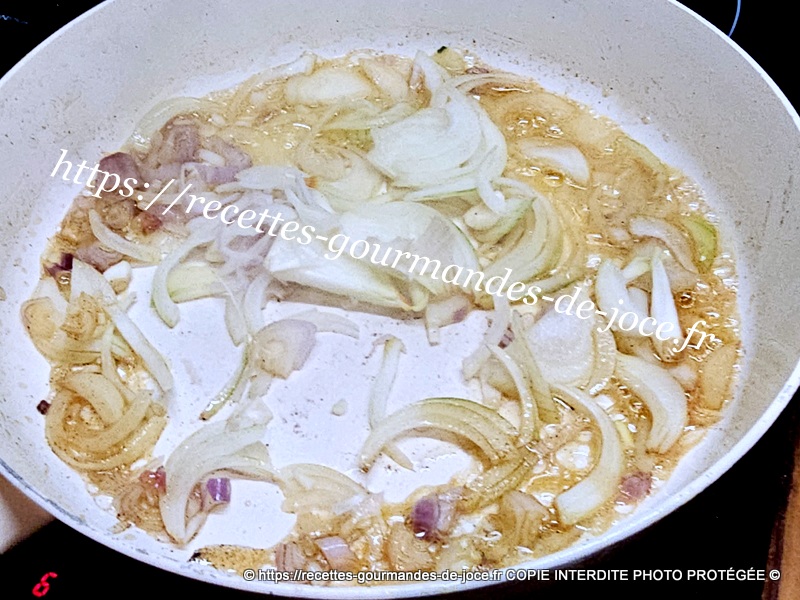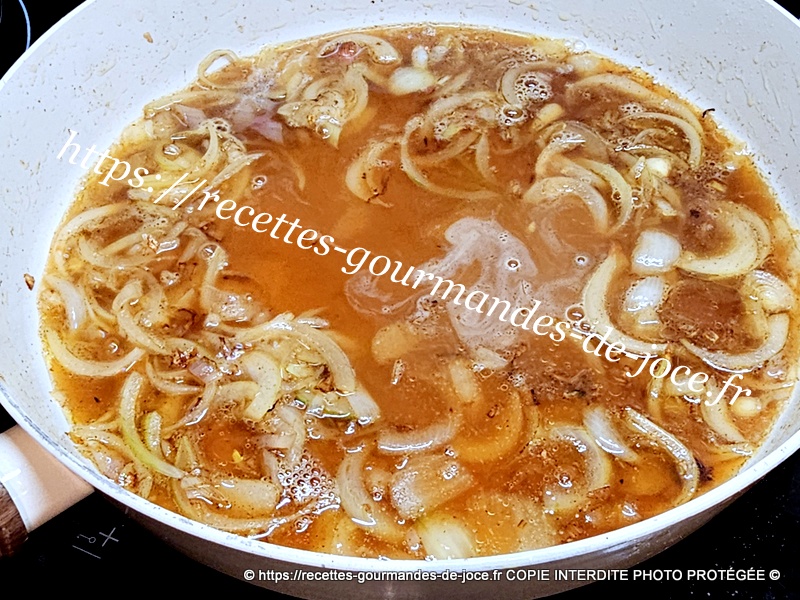 À la place, ajouter les oignons et les échalotes et les faire dorer, verser ensuite le fond de veau réhydraté, mélanger, laisser épaissir 2 minutes.