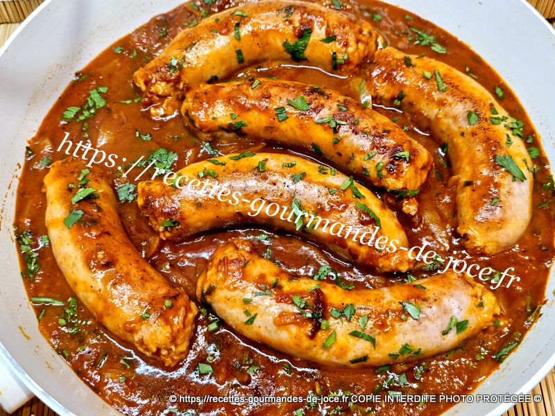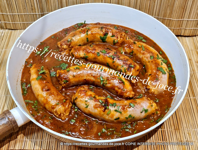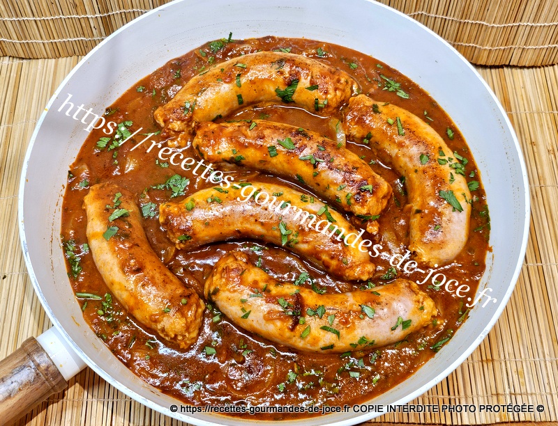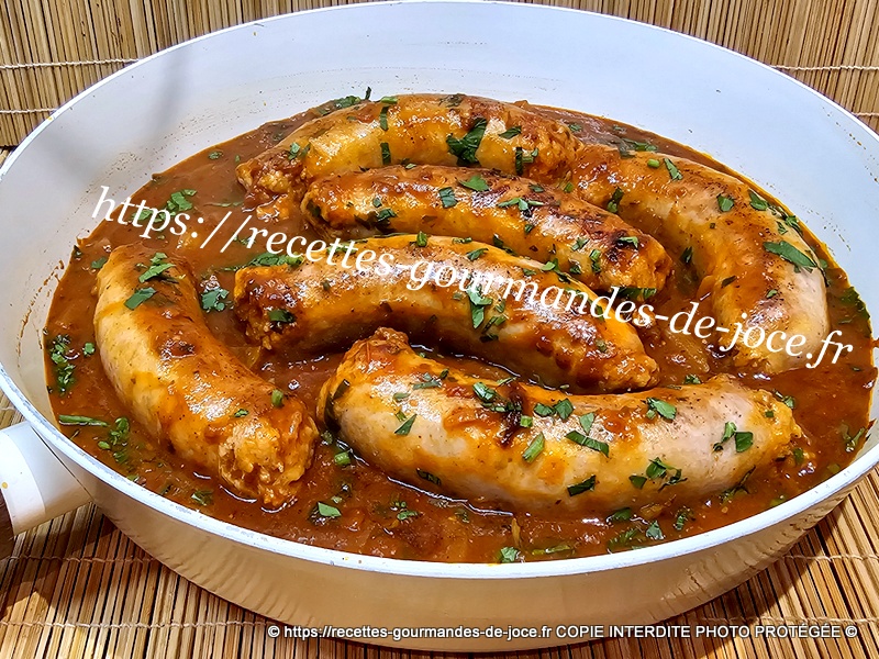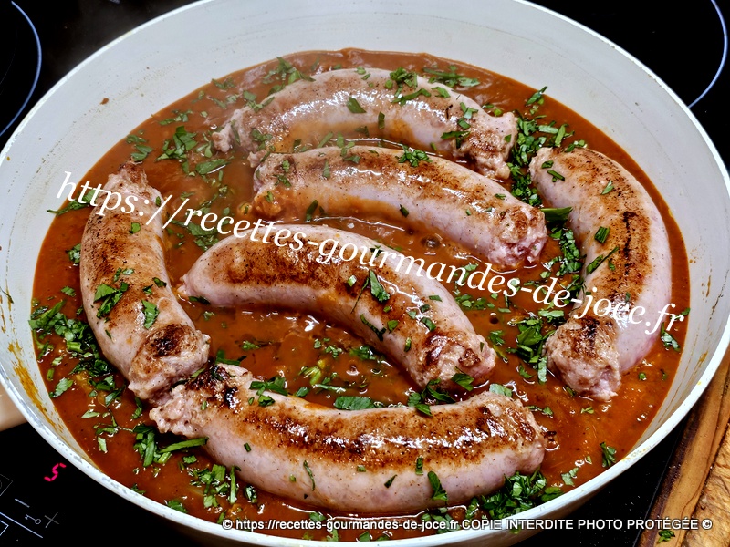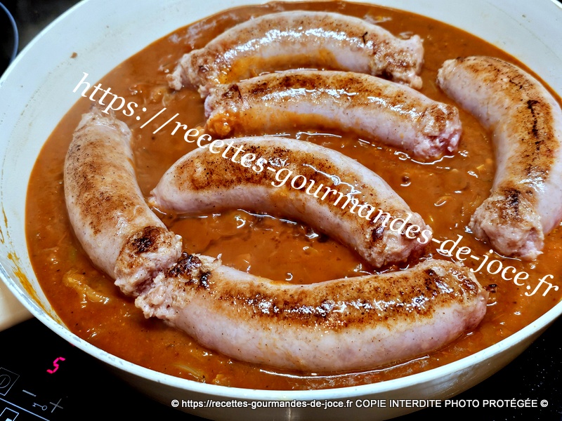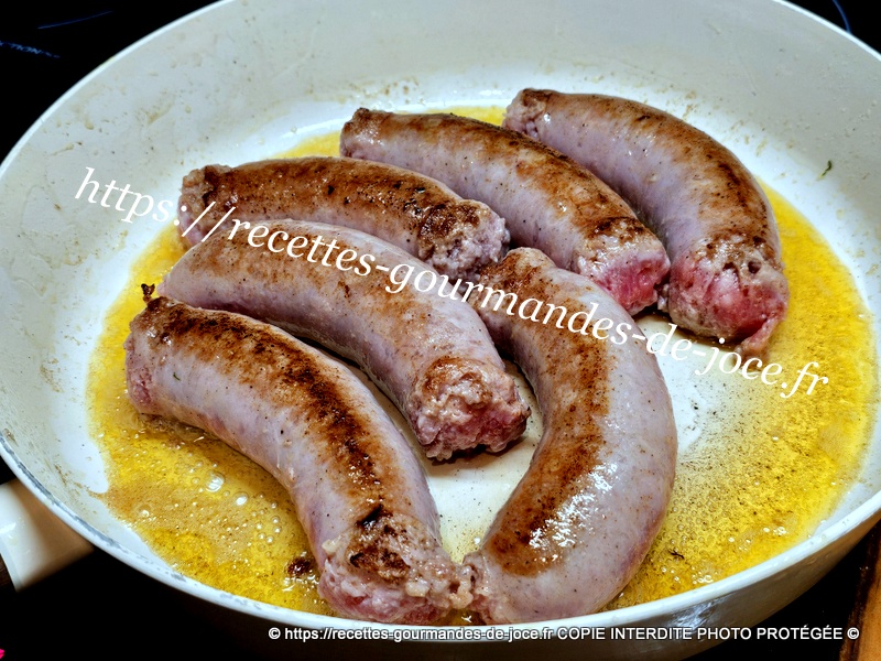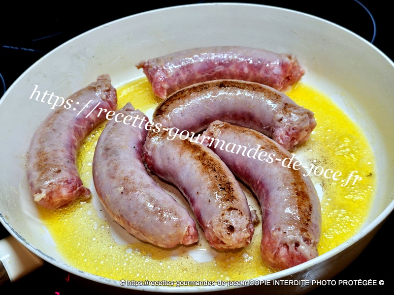 Mettre les saucisses à cuire et dorer sur toutes les faces, lorsqu’elles sont bien dorées, les débarrasser.