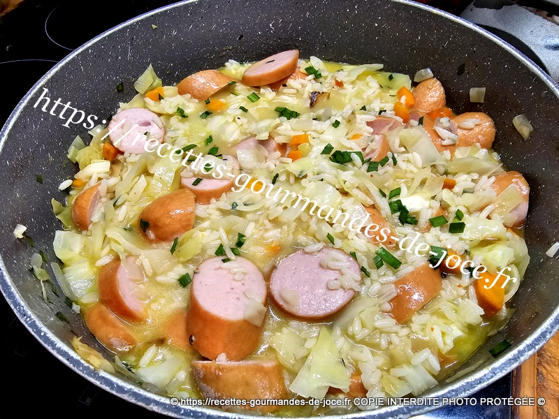 Ajouter ensuite le chou. Mélanger et laisser cuire environ 10/15 minutes le temps qu’il devienne tendre, ajouter ensuite le riz.