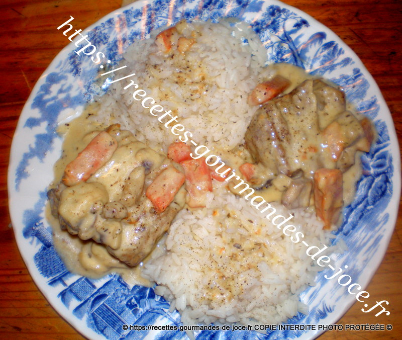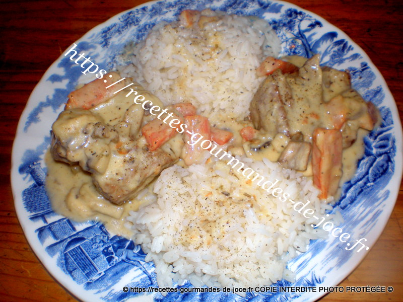 Baisser le feu ajouter la crème et le jaune d’œuf et mélanger aussitôt, napper les morceaux de veau de la sauce et servir accompagné de riz.