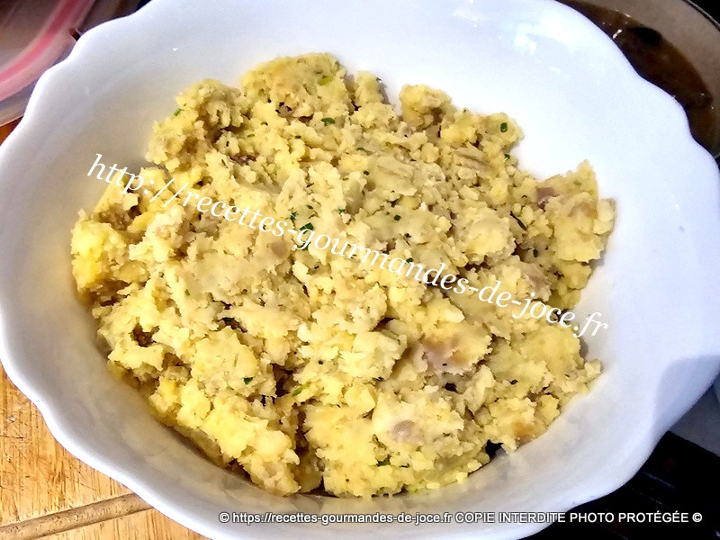 Bien les écraser au presse purée, ajouter la cive à défaut de la ciboulette, mélanger, réservé au chaud.