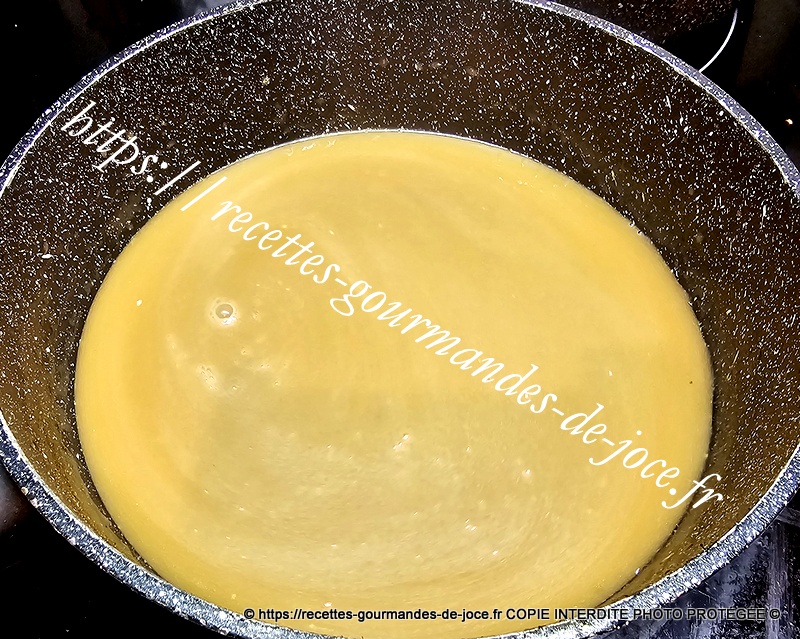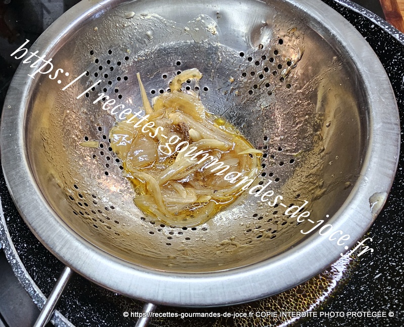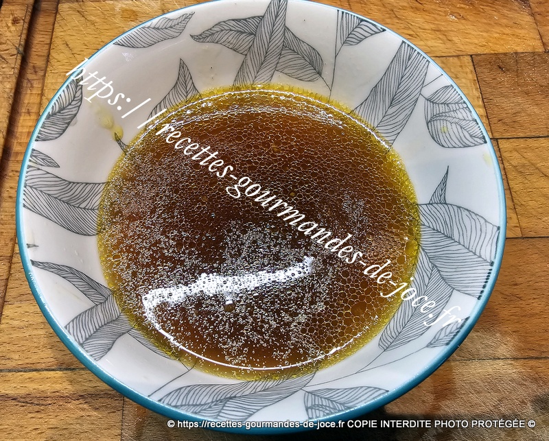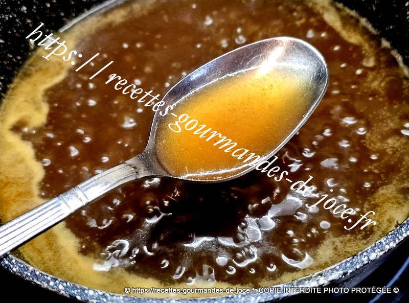Filtrer le jus de cuisson. Dans une casserole en mettre les ¾, mettre le reste dans un bol.
