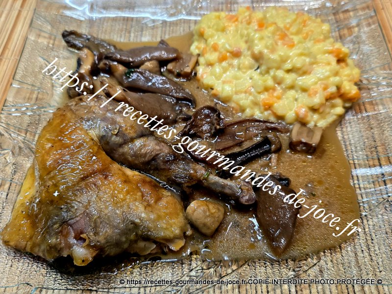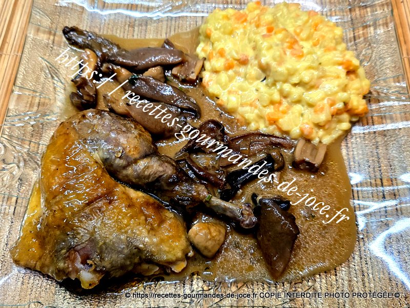Récupérer le reste de chair sur les carcasses et le réserver pour en faire des rillettes (rien ne se perd 😉 ). Servir la pintade avec la sauce et le risotto de pommes de terre/carottes Recette des rillettes ci-dessous ↓