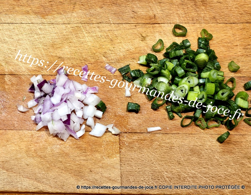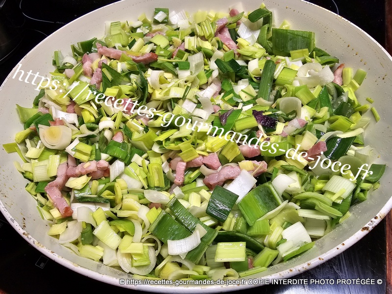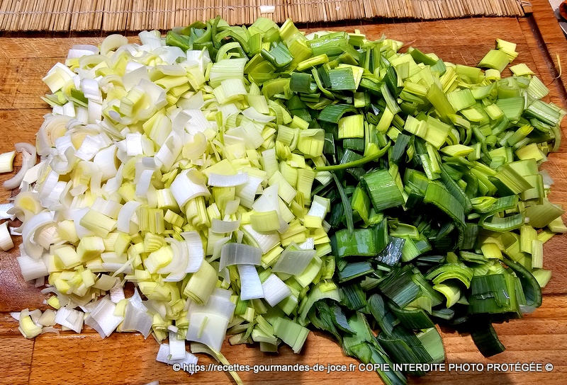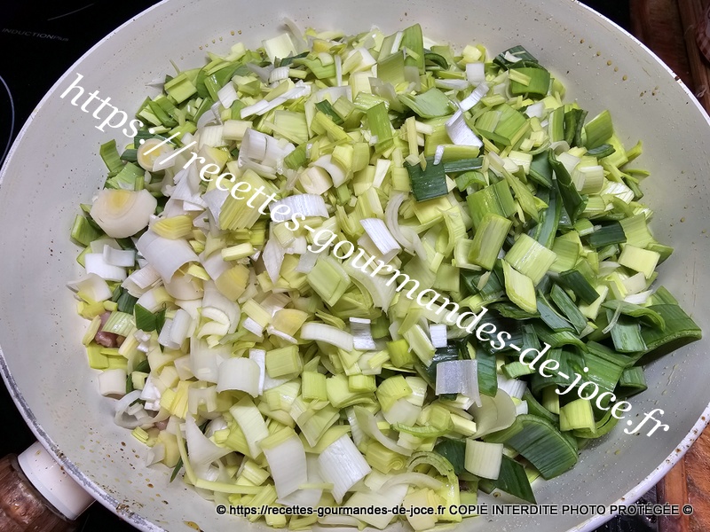Nettoyer et ciseler l’oignon et ses tiges, fendre puis laver les poireaux les émincer finement. Dans une poêle, mettre le beurre, un filet d’huile d’olive à chauffer.