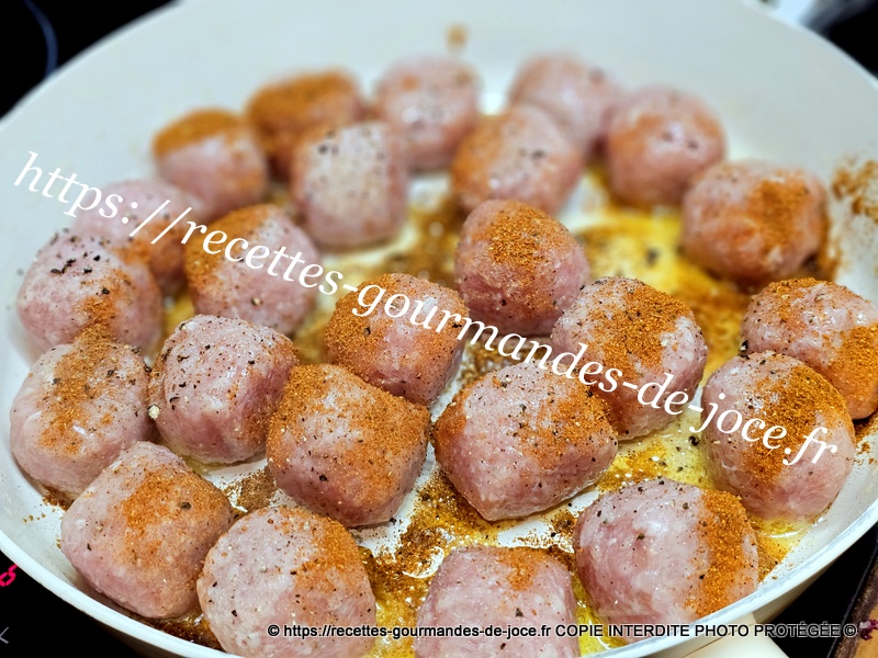 Ajouter ensuite les boulettes de poulet, saler et poivrer et ajouter les épices.
