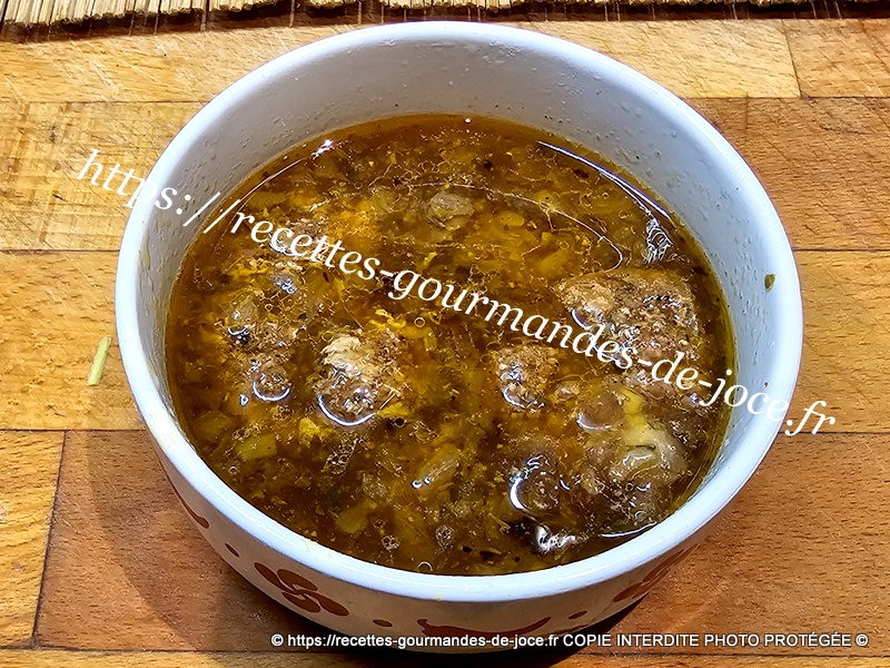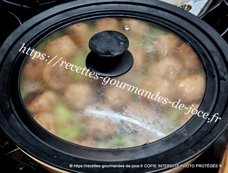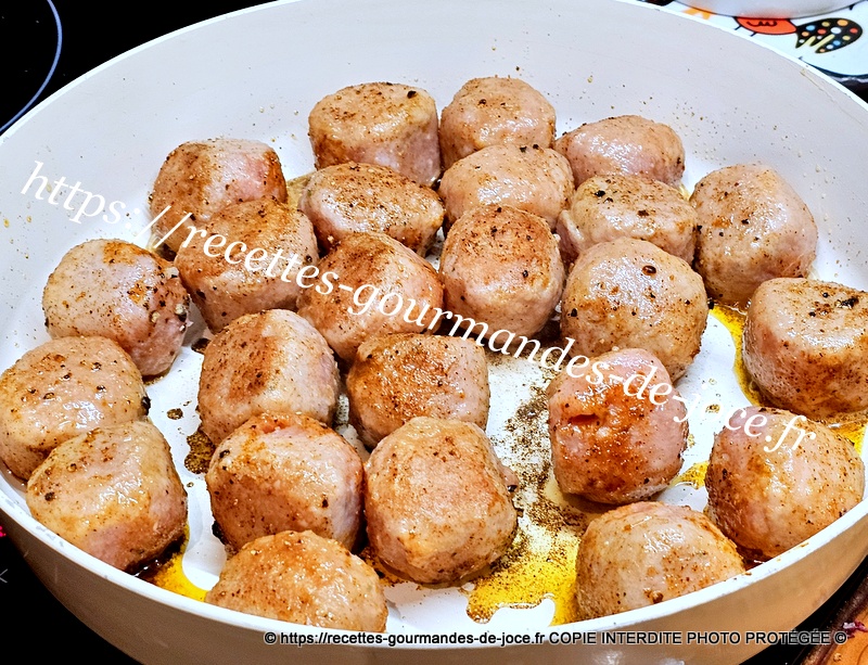 Si vous n’avez pas de jus de poulet, un cube de bouillon de volaille dissout dans 200 ml d’eau chaude sera l’affaire. Ajouter le jus de poulet bien mélanger puis ajouter les boulettes et le jus qu’elles auront rendu.