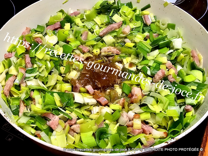Les faire suer puis ajouter les poireaux, saler et poivrer et mélanger.