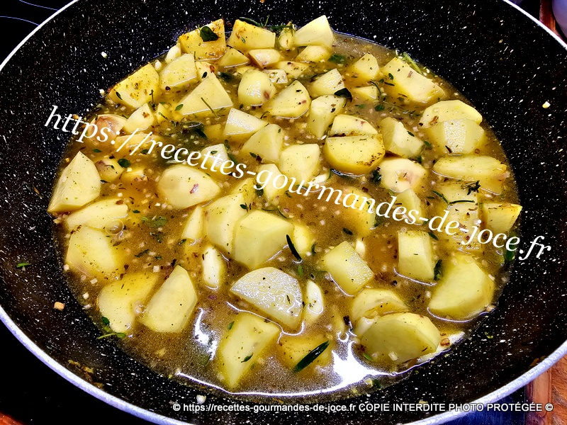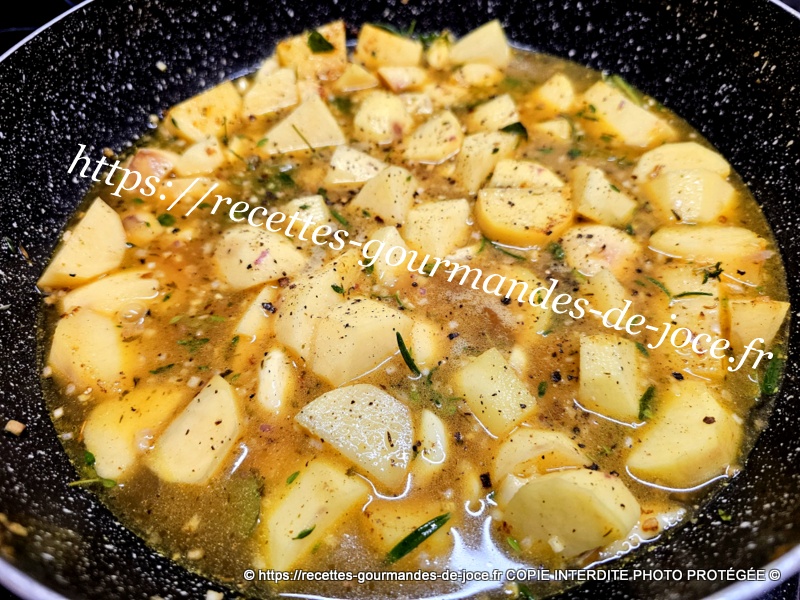 Couvrir et laisser mijoter environ 35 minutes selon la grosseur des pommes de terre à mi-cuisson remuer le tout.