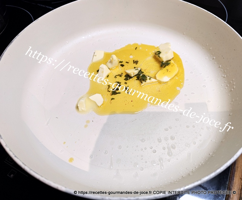 Réaliser votre marinade. Dans une poêle mettre le beurre et 3 bonnes c à s de marinade (le reste de la marinade se garde quelques jours au réfrigérateur pour un barbecue par exemple, ou cela peut-être les restes de la marinade que l’on utilise pour cette recette 😉 ). Mettre à chauffer.